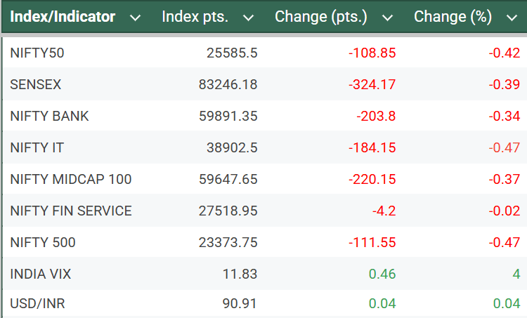 Indian equity benchmarks opened about 0.5% lower on Monday as weak global cues and continued foreign fund selling weighed on sentiment. Investors awaited clarity whether the indices hold key support levels after GIFT Nifty signalled a gap-down start and Asian markets traded lower. In European markets, EUROSTOXX 50 futures and DAX futures both fell 1.1%. Japan’s Nikkei dropped 1% as risk-off sentiment prevailed. Market breadth remained negative, with declines outpacing advances, reflecting broad based caution at the start of the week. The volatility, meanwhile, spiked more than 5%, highlighting rising nervousness and increasing caution among investors.