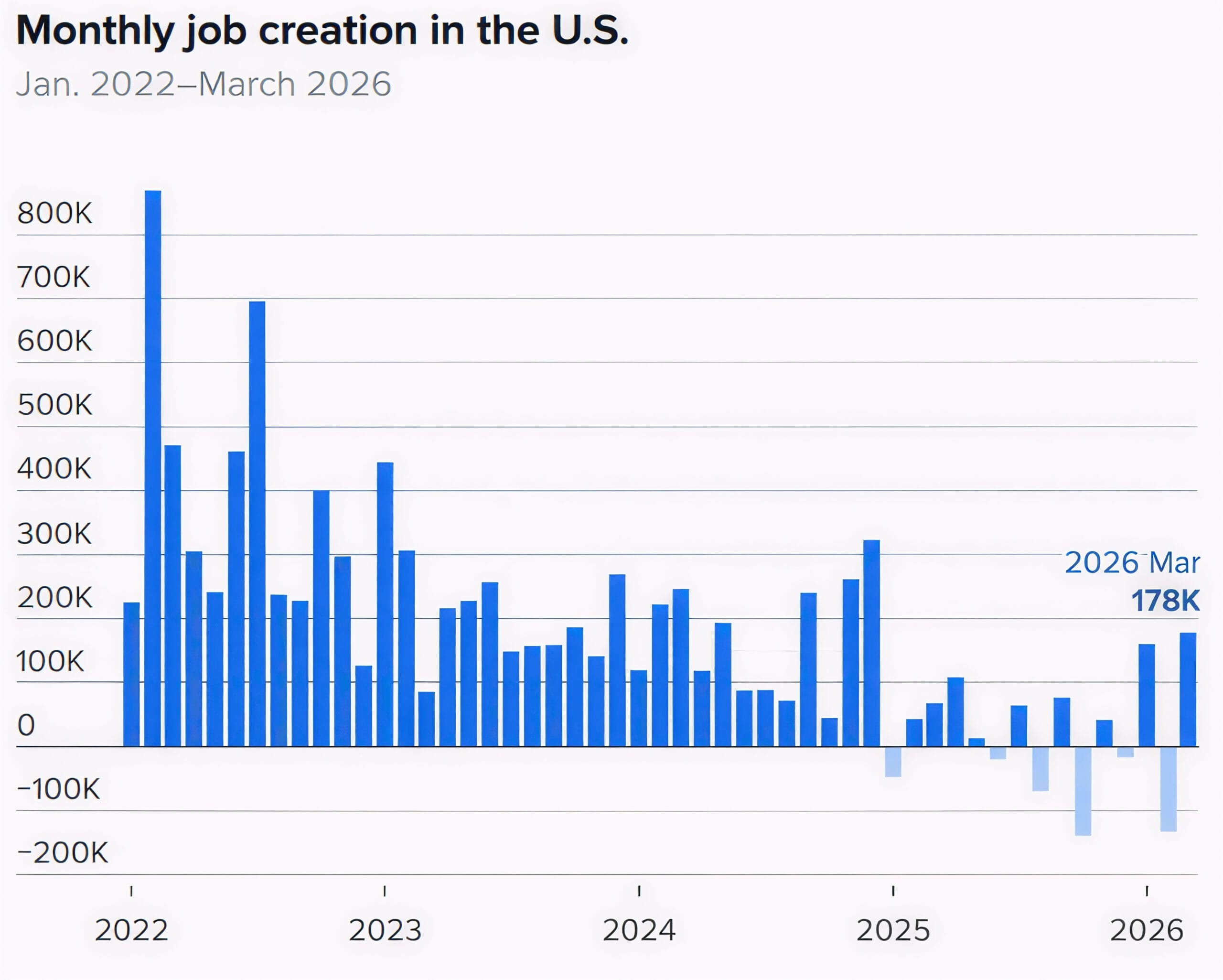 A look at the recent number of job additions from the U.S. market