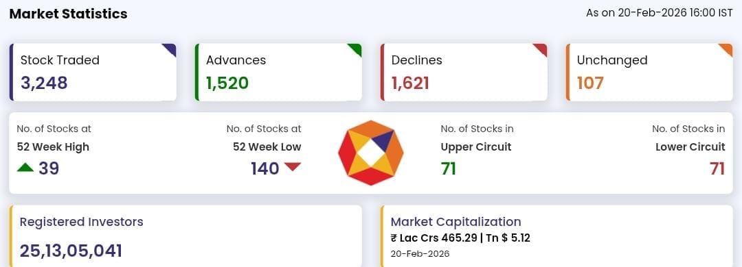 Hindalco Industries, NTPC, SBI Life, L&T, Coal India were among major gainers on the Nifty, while losers were Infosys, Tech Mahindra, Eternal, HCL Technologies and Grasim Industries. While more than 200 stocks touched their 52 week-low including Ola Electric, Suzlon Energy, LT Technology, Wipro, among others.