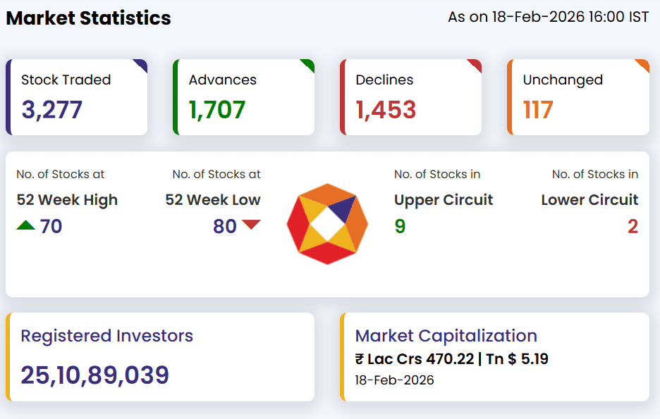 Welcome to this edition of The Wrap of the Markets for February 18,2026 wherein we take a look at key headlines that drew attention across the nation, including the Impact India AI Summit 2026 and India’s trade deficit, among others. Alongside, we go through the performance of the Indian Equity Market Indices for the day- both broader and sector-wise, with the institutional trading activity. Plus, we take a look at the Market Stats and Turnover data from the exchange, and at the Wall Street.